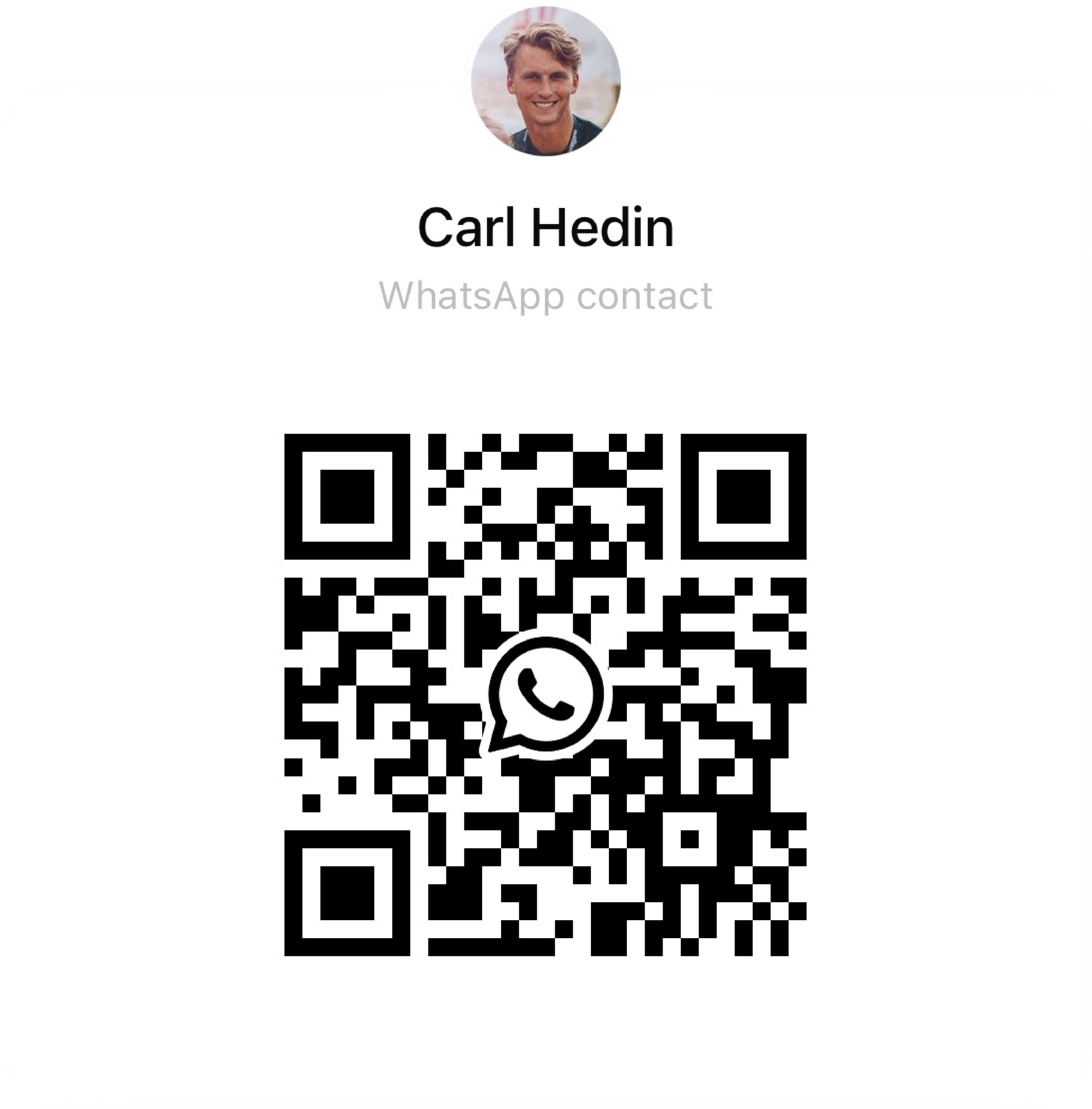 Kvällens toastmaster är brudens lillebror Carl. Önskar ni framföra något under dagen är det honom ni skall kontakta. Scanna QR-koden så startas en chat med Carl i Whatsapp.